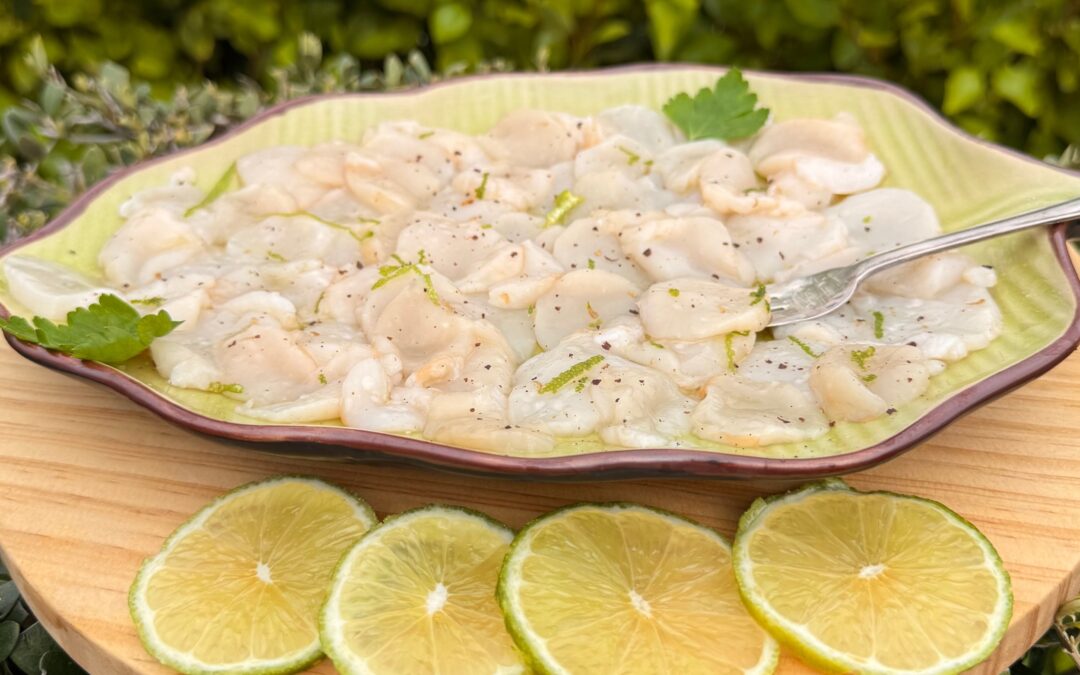 Carpaccio de Saint-Jacques parfumé au citron vert Imprimer la recette Carpaccio de Saint-Jacques parfumé au citron vert Découvrez la fraîcheur exquise des Saint-Jacques parfumées à l'huile de sésame avec une touche acidulée de citron vert, pour un appéritif gourmand...
