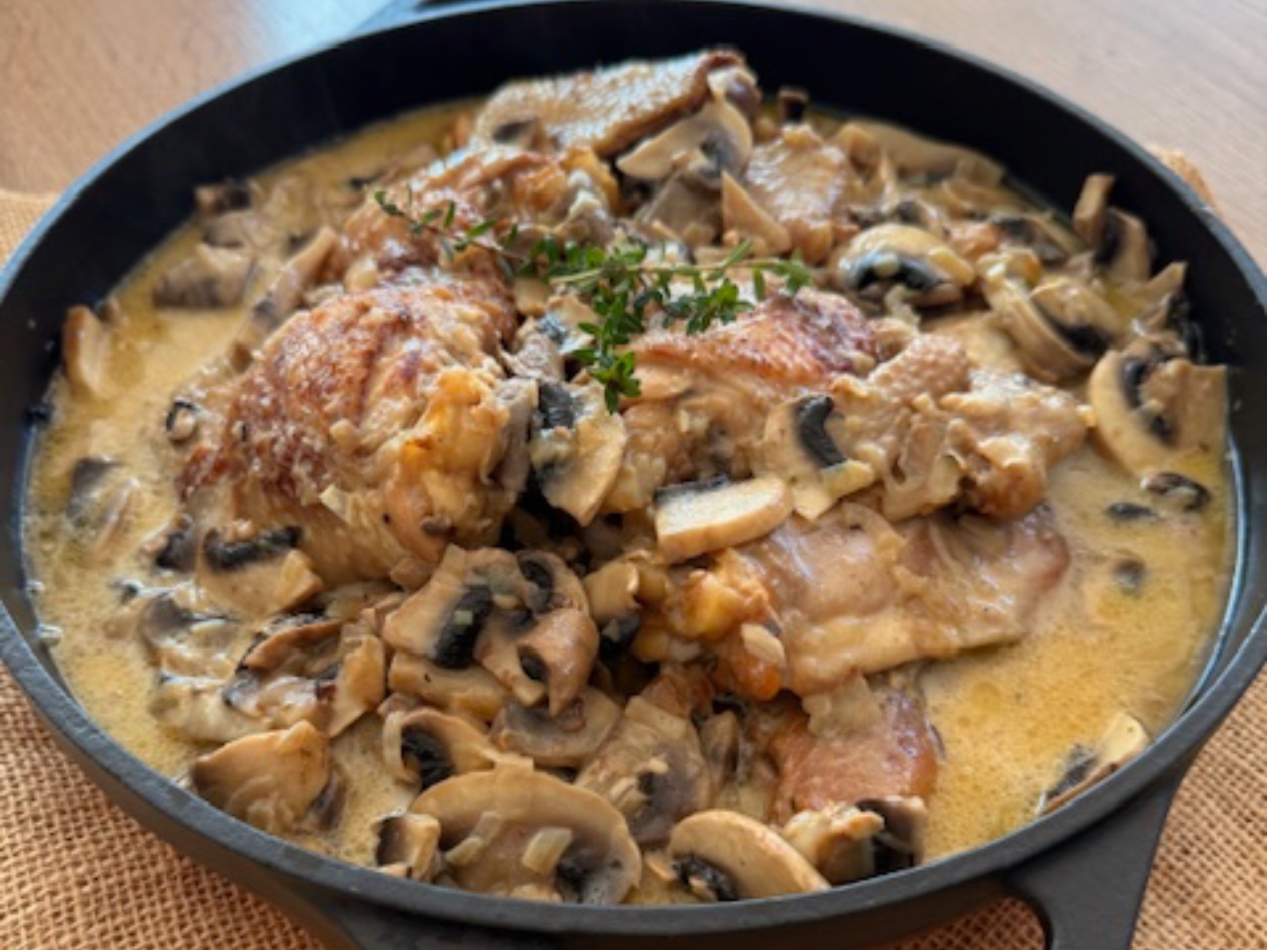 - Déposez les cuisses de poulet dans un plat creux, versez la sauce.