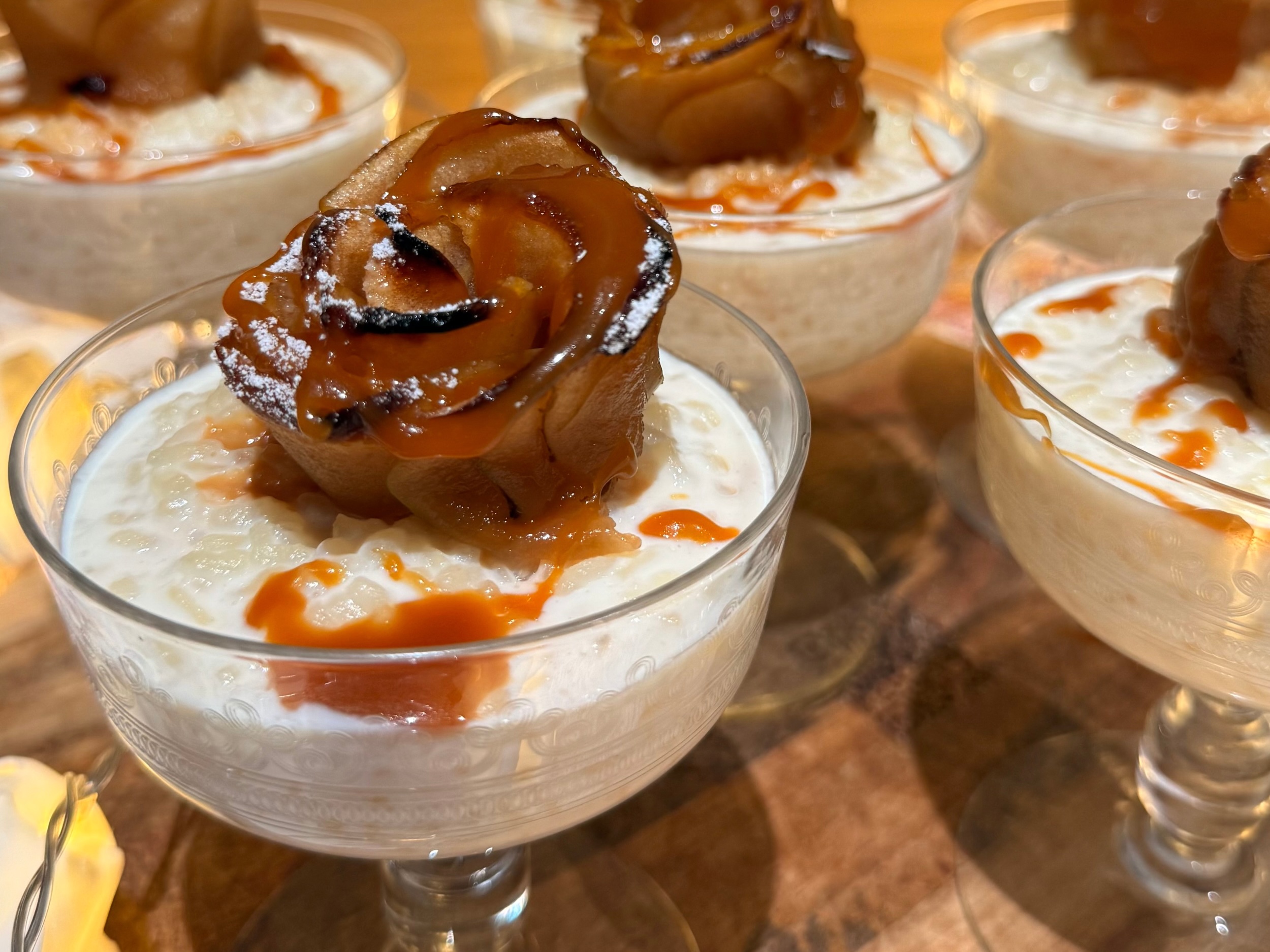 Savourez cette douce harmonie entre fleurs de pomme, riz au lait et caramel beurre salé. Un pur moment de gourmandise ! Bon appétit !