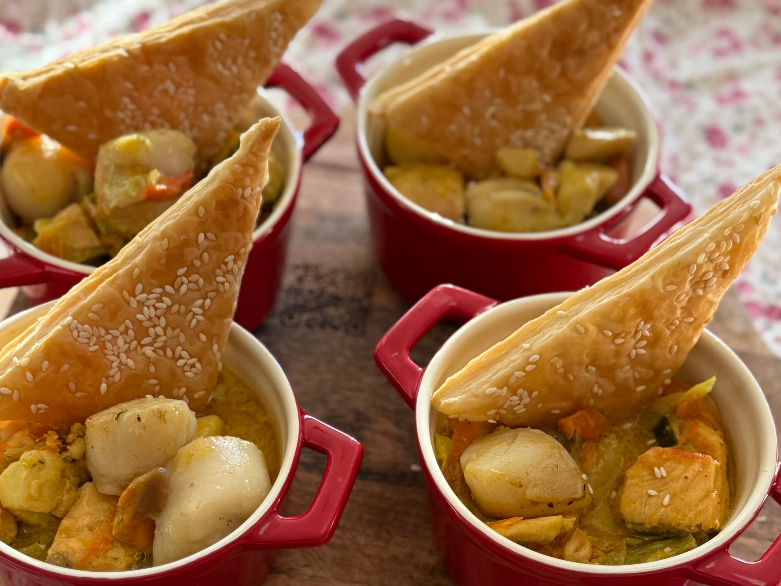 - Dans les petites marmites, déposez la julienne de légumes avec la crème.